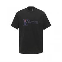 LOUIS VUITTON Tシャツはブラックのコットン素材に、胸元に施された「LV Lovers」のロゴが印象的です。ロゴ部分には赤と青のグラデーションが施され、鮮やかで現代的な印象を与えています。シンプルなシルエットでありながら、視覚的に引き立つデザインが魅力的で、ルイヴィトン Tシャツ
